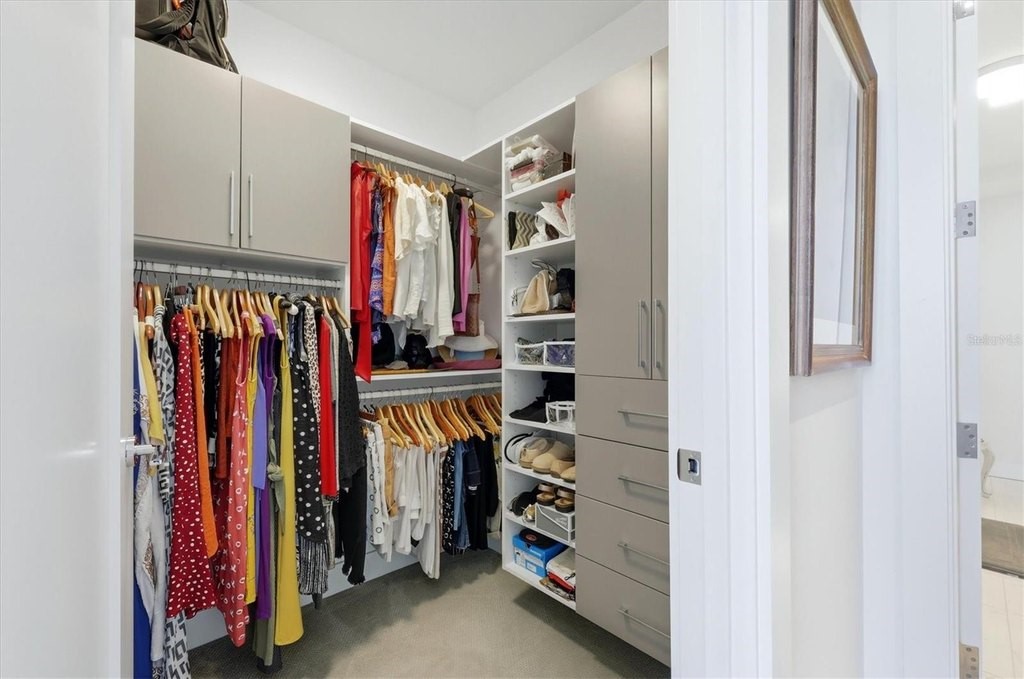 Ideal west-facing 8th floor retreat with views of the beautiful resort style pool and a partial view of the bay. The open concept layout with floor-to-ceiling glass creates a bright and light filled space. While the addition of screen sliders in the great room and guest suite allow gentle bay breezes to flow through. The split-bedroom floor plan gives privacy, complemented by a separate den featuring a built-in closet and custom lighting, perfect for a home office or separate living space. Functional perks include an in unit laundry room with built-in cabinetry, a convenient powder room adjacent to the kitchen, a climate-controlled storage unit, and TWO TANDEM PARKING SPACES in the secure garage. Mark Sarasota offers a luxurious, walkable downtown lifestyle with an expansive fifth floor amenity deck. Residents enjoy a heated saltwater infinity lap pool and spa, private cabanas, fire pits, and an outdoor kitchen. Inside, the offerings continue with a fireplace lounge, a premier fitness center with yoga and spin studios, billiards, and a club room with a catering bar. Step outside to find the city's best restaurants, the Farmer's Market, and cultural venues at your doorstep, with Marina Jack and Lido Beach just across the Ringling Bridge. Offering 24-hour concierge service, secure access, and on-site management, this pet-friendly residence defines vibrant urban living at one of Sarasota's most distinguished addresses.